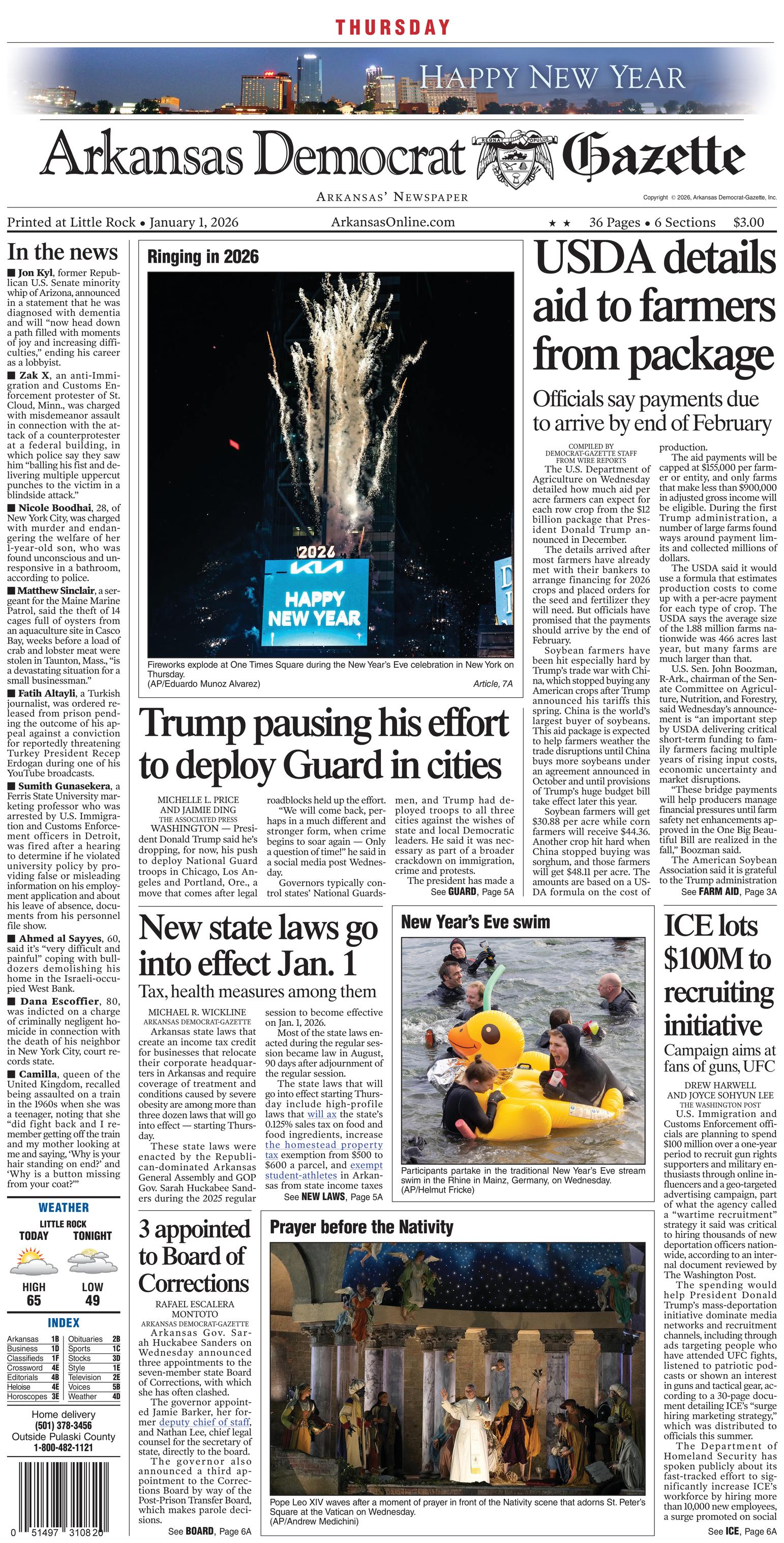 Thursday, Jan. 1, 2026