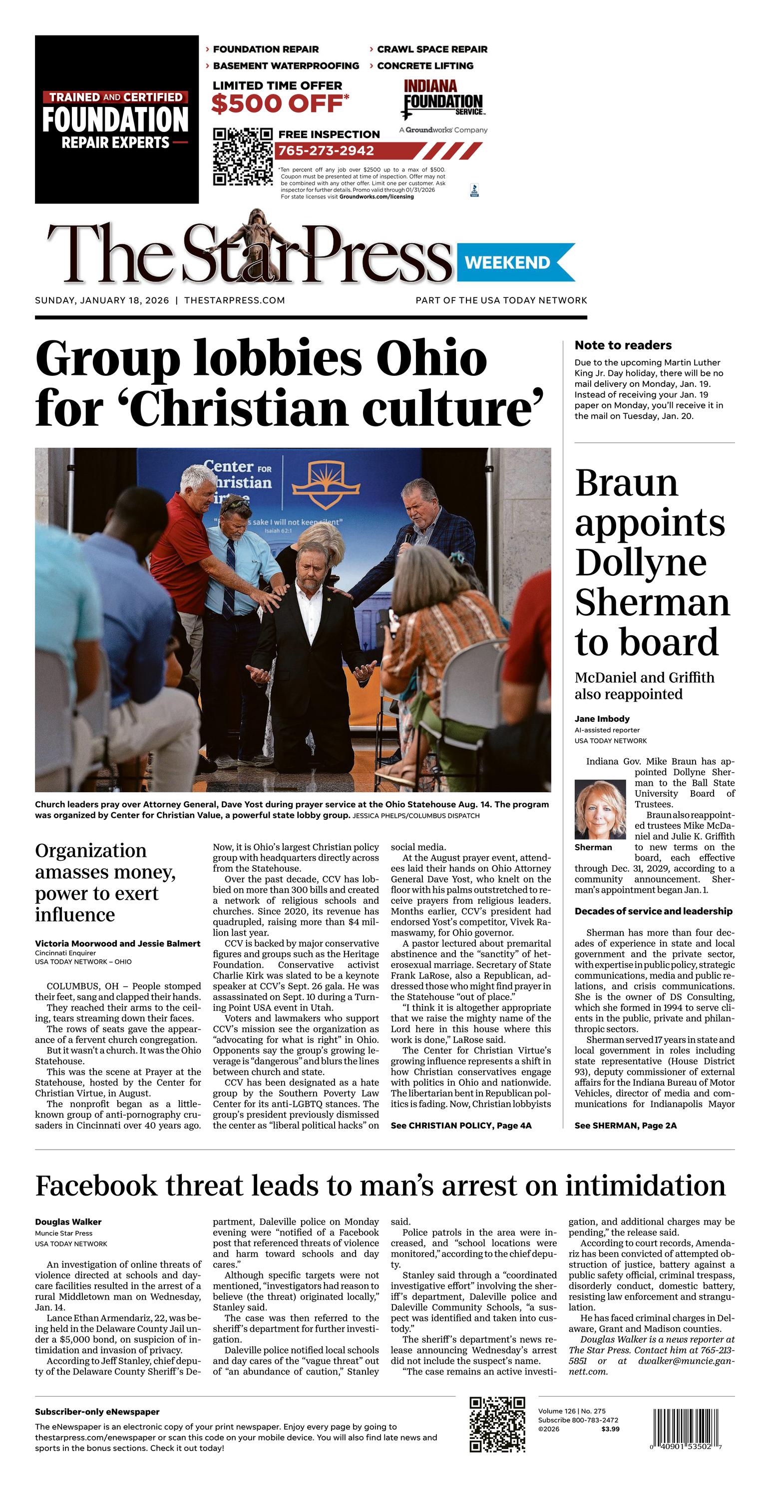Sunday, Jan. 18, 2026
