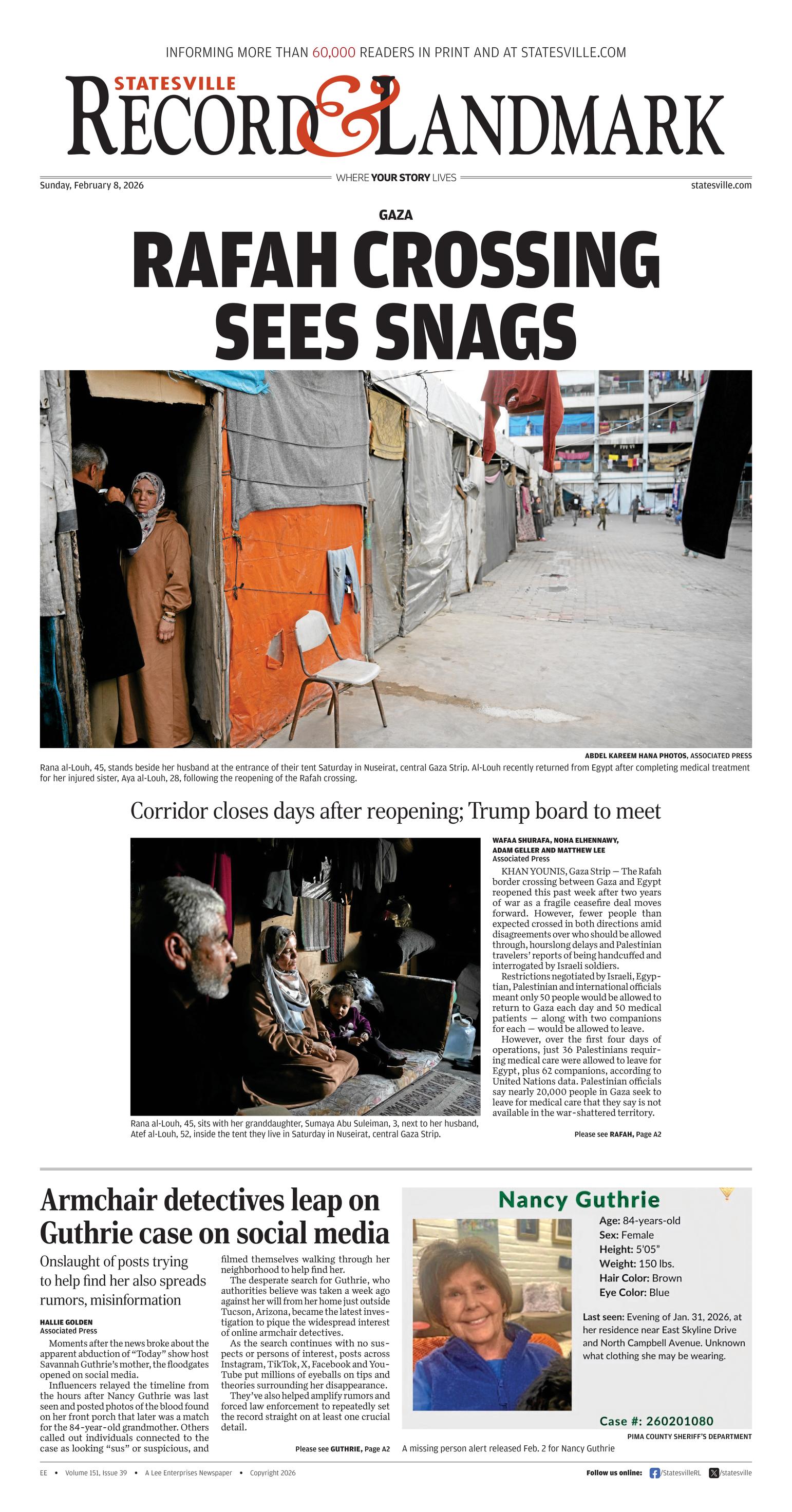 Sunday, Feb. 8, 2026