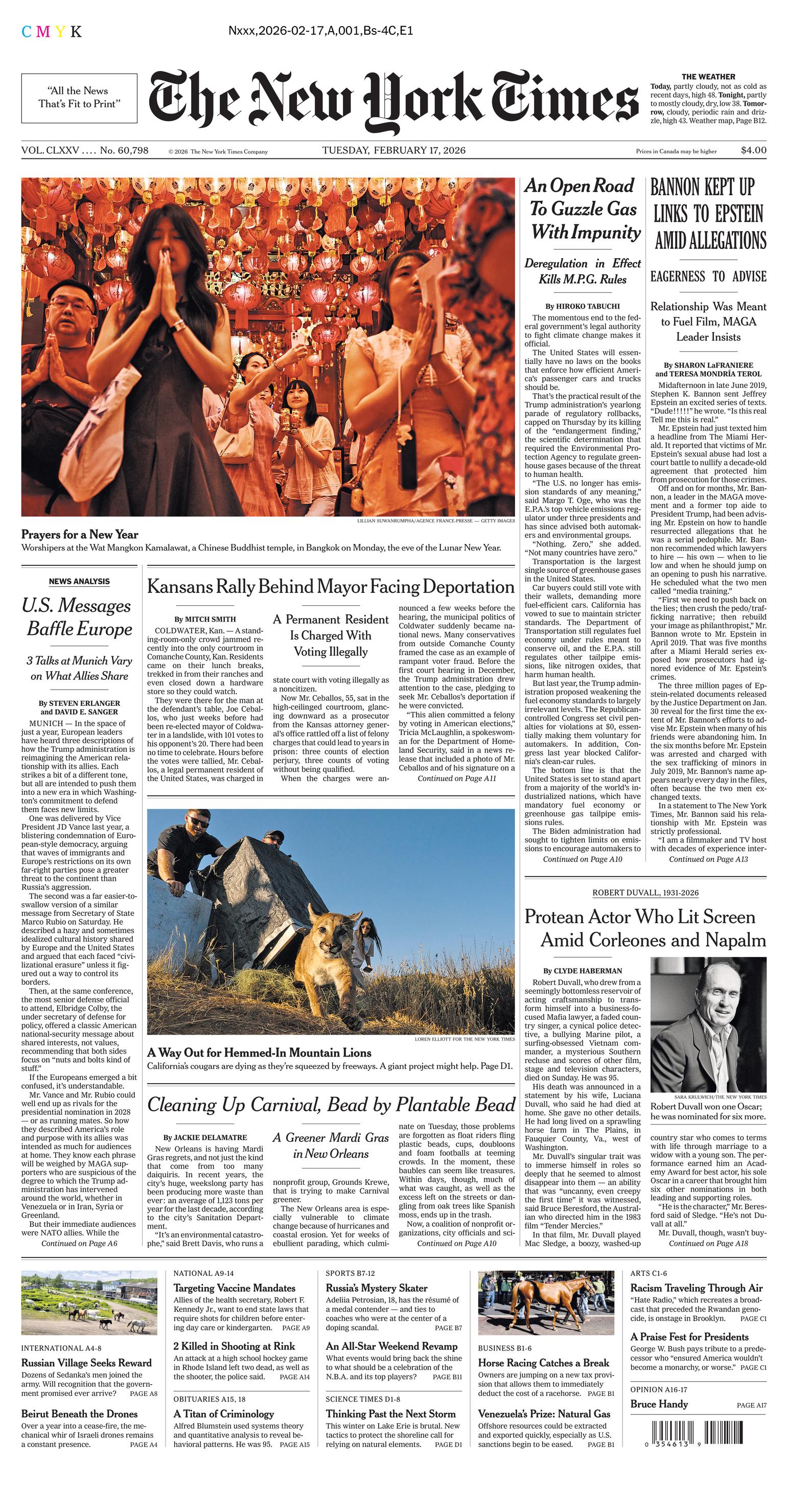 Tuesday, Feb. 17, 2026